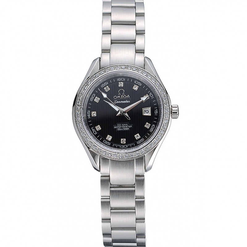 Omega Seamaster Aqua Terra Dial Negro caja del diamante pulsera de acero inoxidable 622449