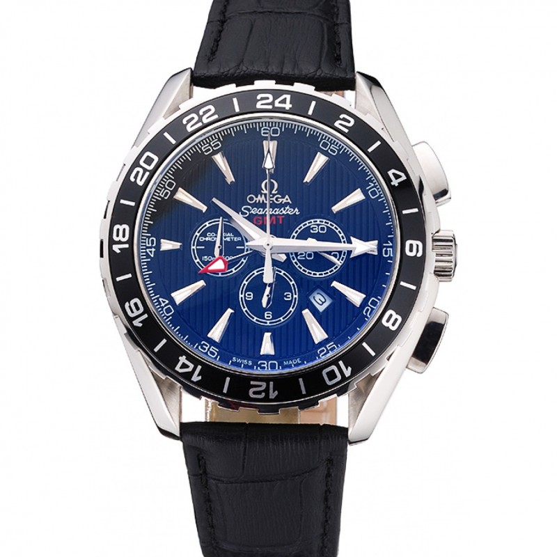 AAA Réplicas Relojes Omega Seamaster Aqua Terra GMT Chrono Dial Negro Cuero Negro pulsera 622535
