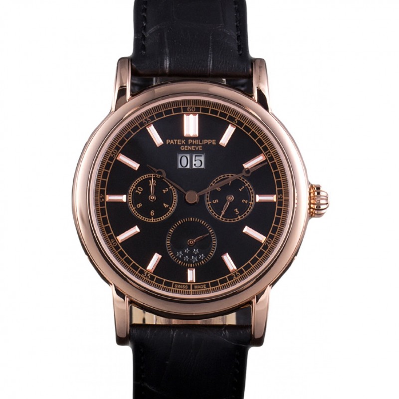 Alta calidad Patek Philippe Grand complicaciones de oro rosa Bisel Negro Croco Correa 80292
