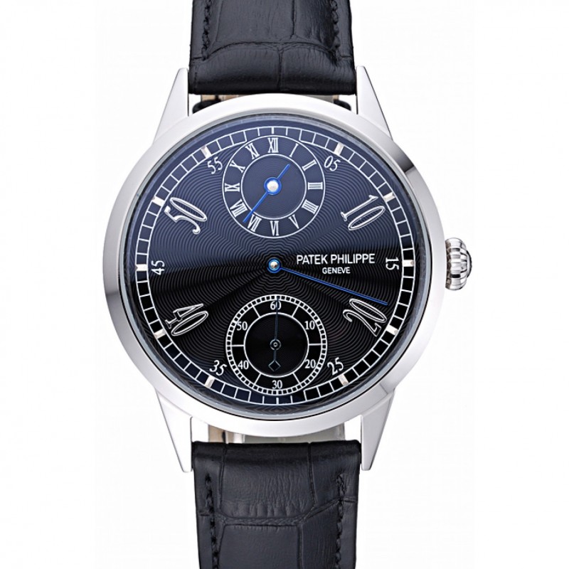 Patek Philippe Geneve Dos Dial Negro Dial acero inoxidable Bisel Negro banda de cuero 622145