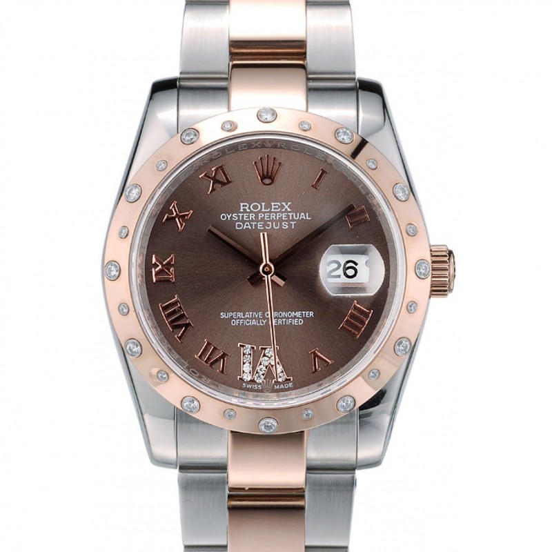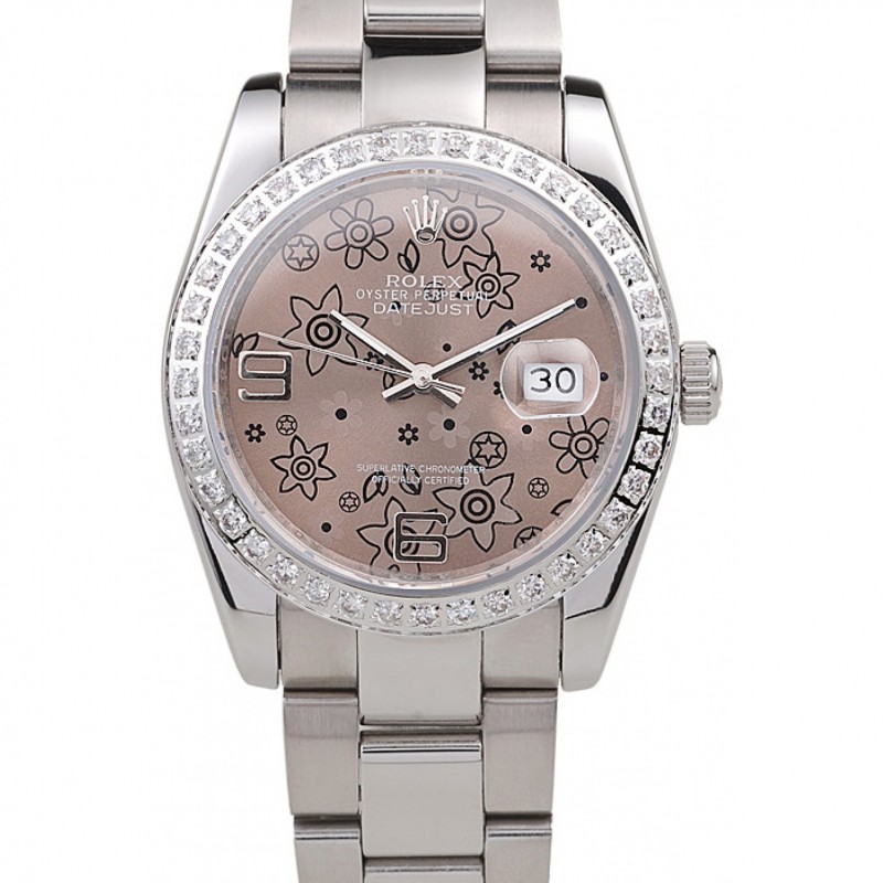 Rolex Datejust acero inoxidable pulido Flores Brown Dial Diamante plateado