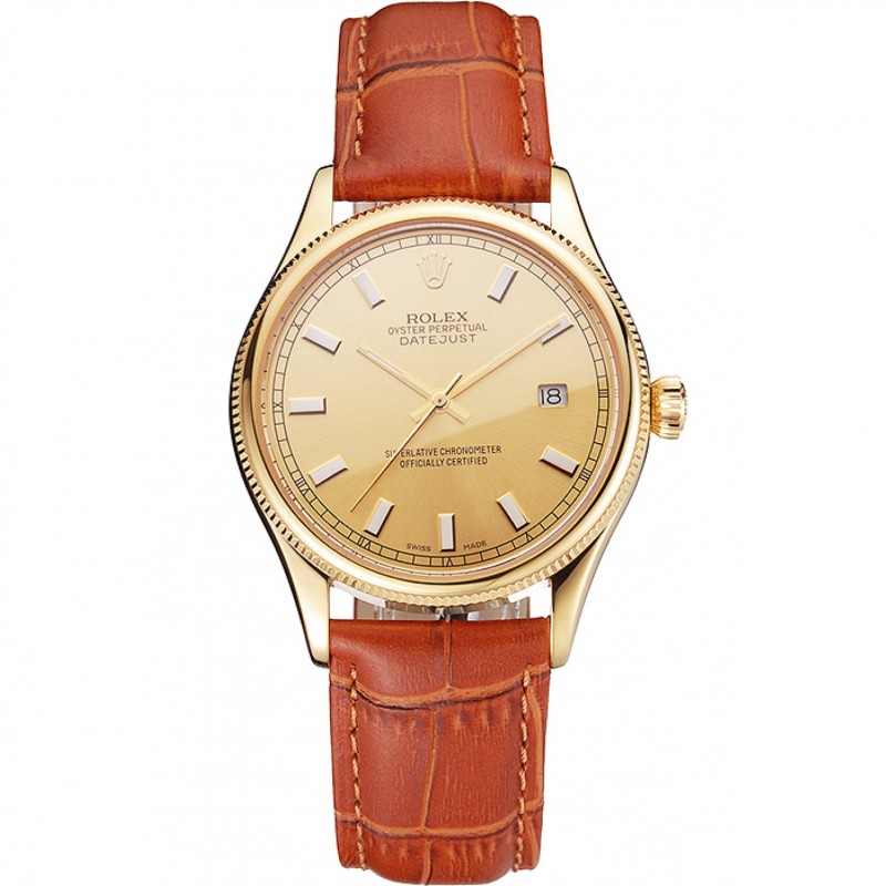 Rolex Datejust Oro Dial correa de cuero de la caja del oro marrón claro