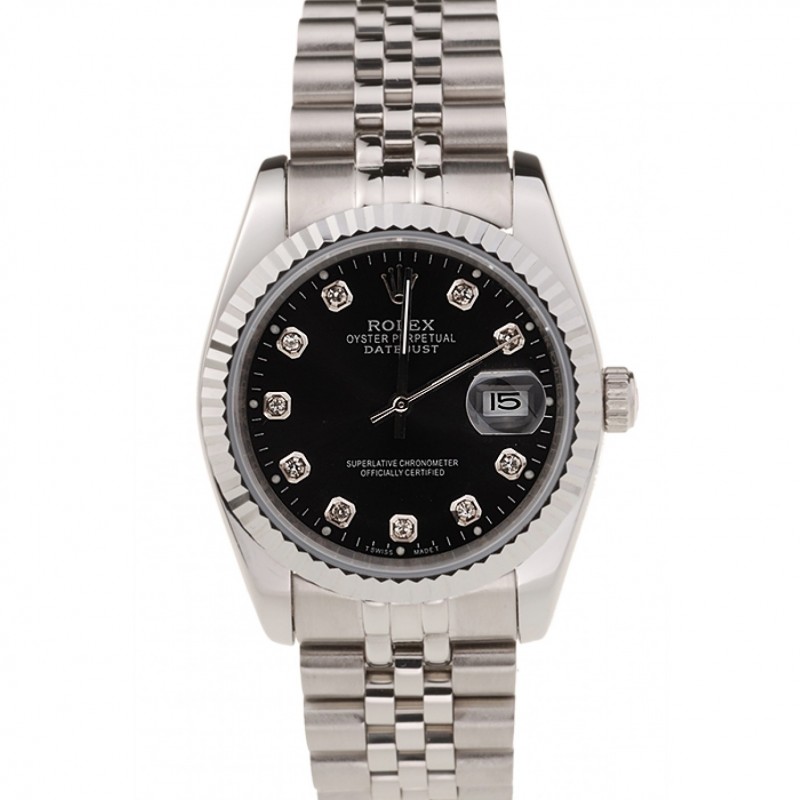 Rolex Datejust Negro Dial Caja de acero inoxidable y pulsera