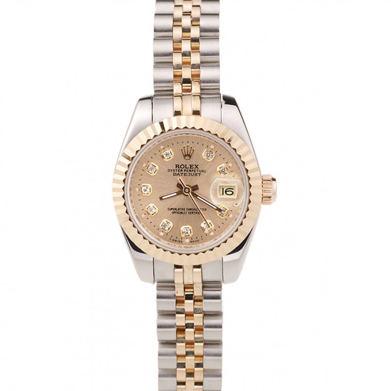 Rolex Datejust acero inoxidable pulido Flores Brown Dial Diamante plateado