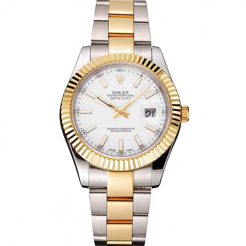 Rolex Datejust Blanco Dial Caja de acero inoxidable Pulsera de Oro Dos Tonos