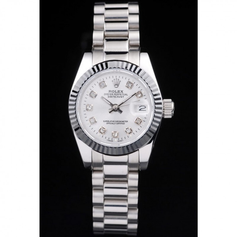 Rolex Datejust oro amarillo 18k plateado diamante del acero inoxidable plateado 98076