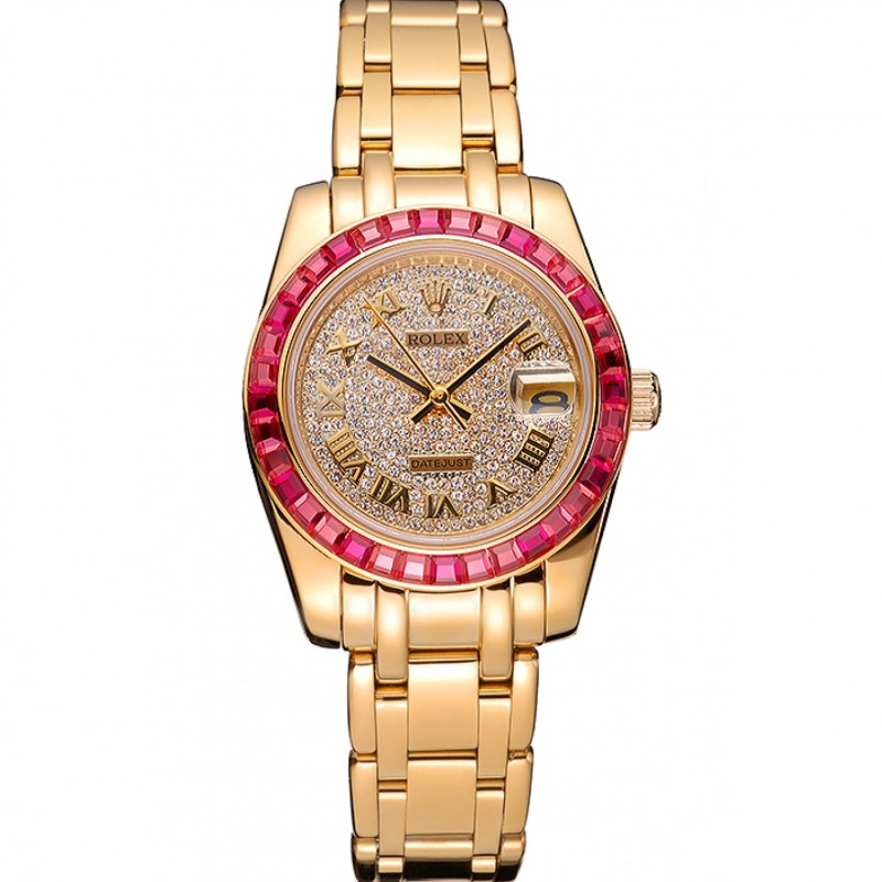Datejust línea Diamante Joyas rosa Caja de oro bisel y el brazalete 622835