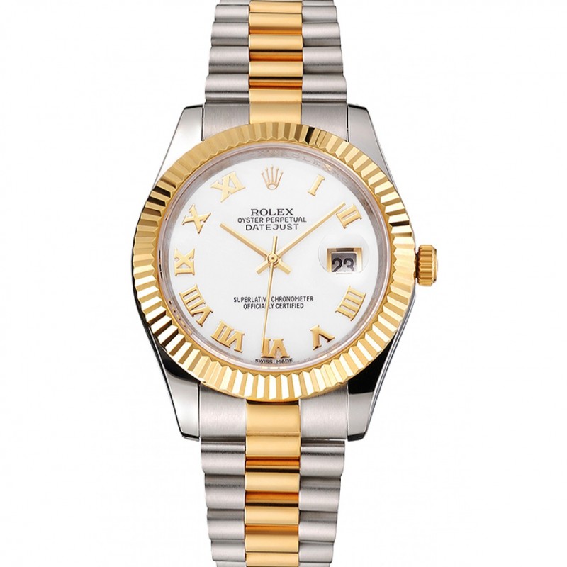 Rolex Datejust Blanco Dial caja de acero inoxidable de los números romanos bisel de oro pulsera de dos tonos