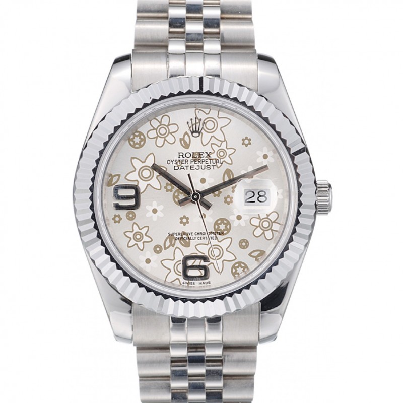 Lujo Réplicas Relojes Rolex Datejust suiza de acero inoxidable acanalado Bisel Dial de plata 41996