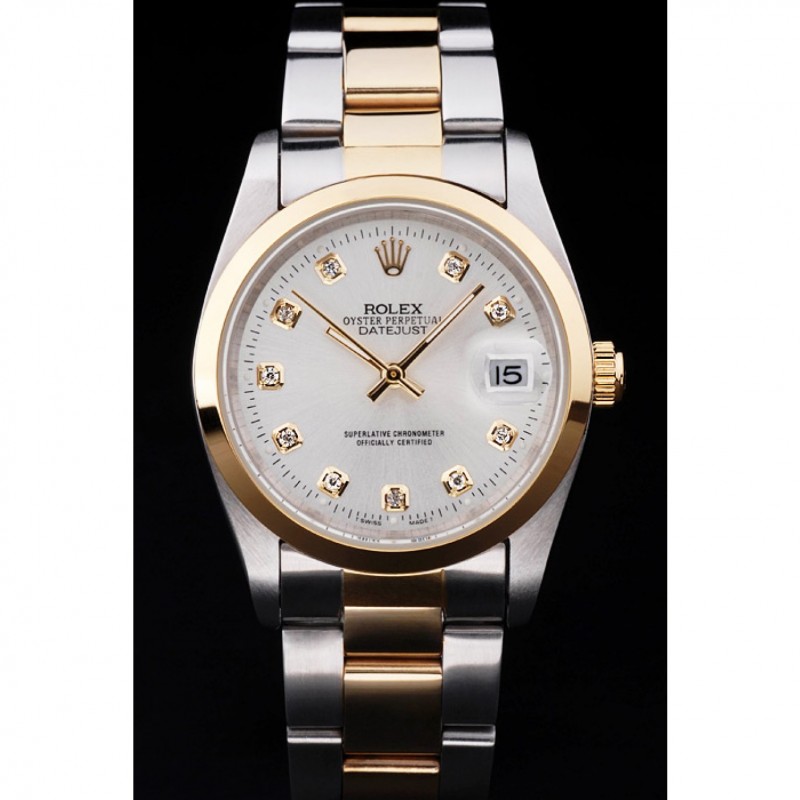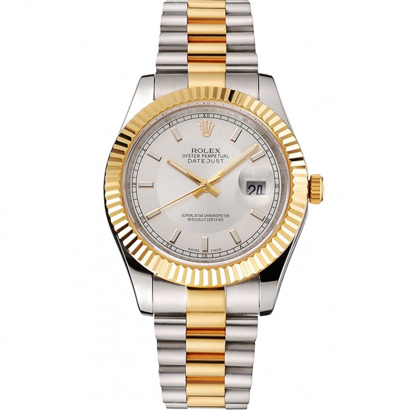 Rolex Datejust Blanco Dial Caja de acero inoxidable bisel de oro brazalete de dos tonos de oro