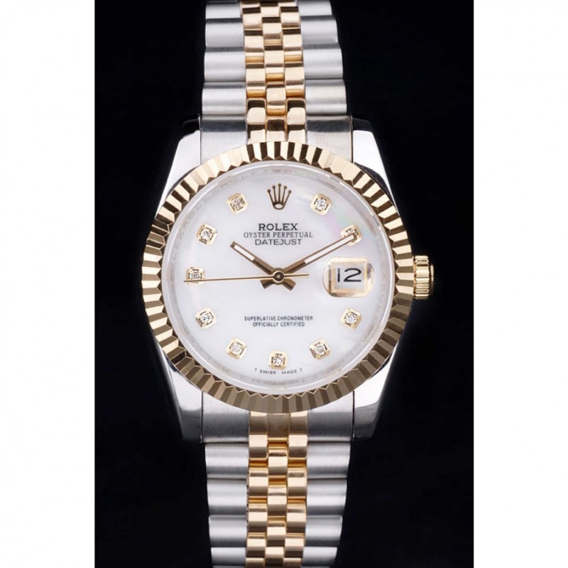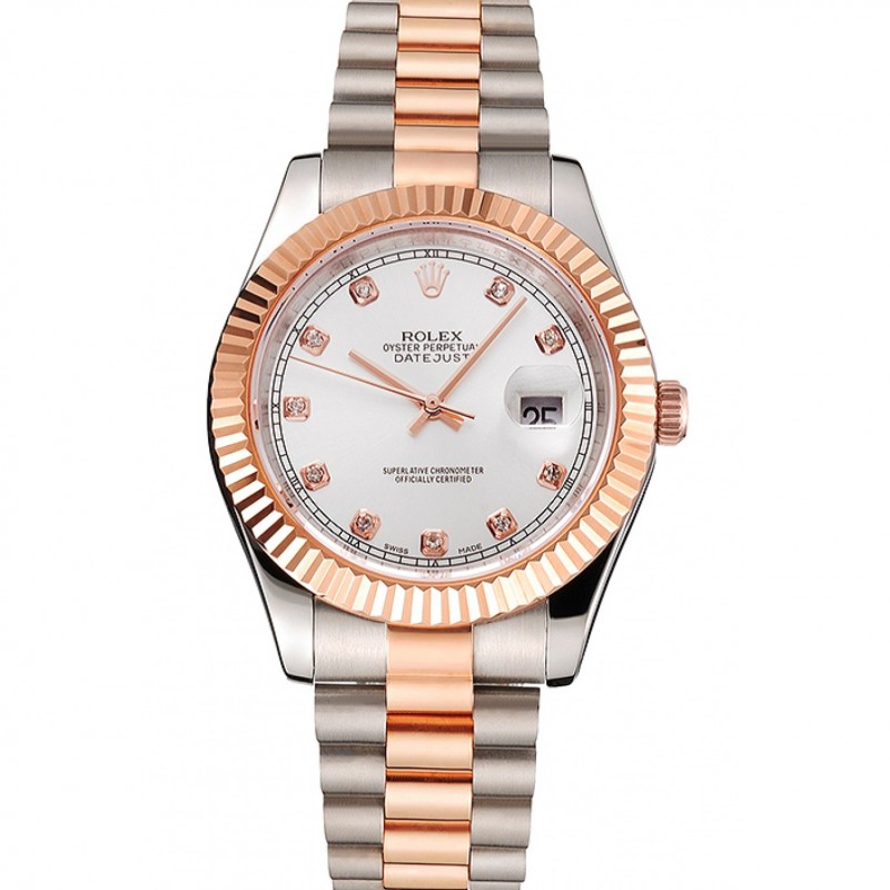 Rolex Datejust Blanco Dial caja de acero inoxidable del bisel de oro rosa pulsera de dos tonos