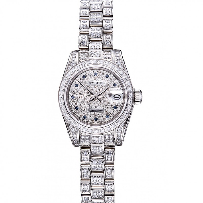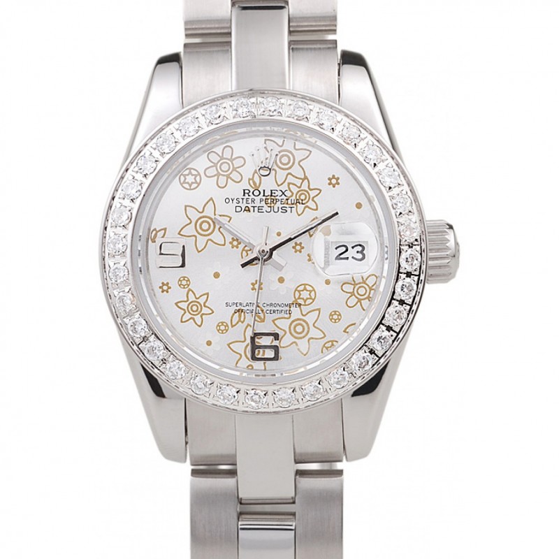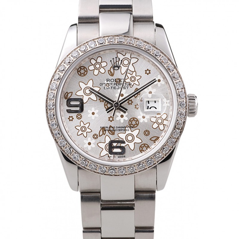 Barato Rolex Datejust de acero inoxidable pulido de plata Flores Dial Diamante plateado 98082