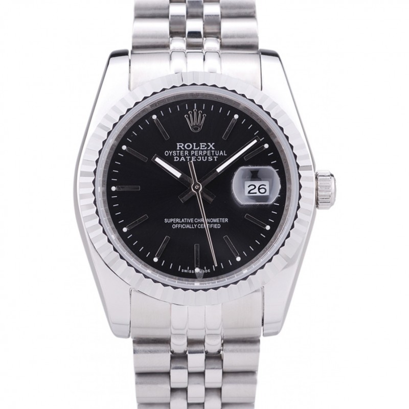 Rolex Datejust Negro Dial Caja de acero inoxidable de los números romanos y pulsera
