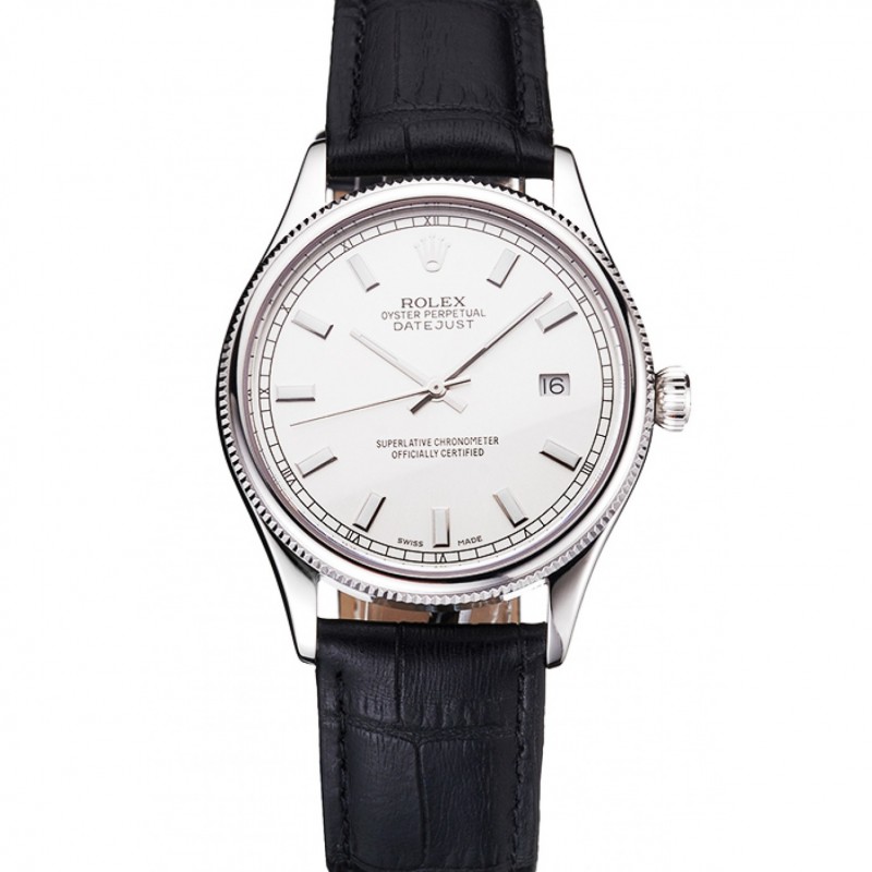 Alta calidad Réplicas Relojes Rolex Datejust Blanco Dial correa de cuero caja de acero inoxidable Negro
