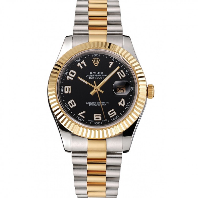SS Réplicas Relojes Rolex Datejust Negro Dial Caja de acero inoxidable bisel de oro brazalete de dos tonos