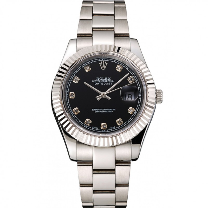 Rolex Datejust Negro Dial Dimond marcas de la hora Caja de acero inoxidable y pulsera