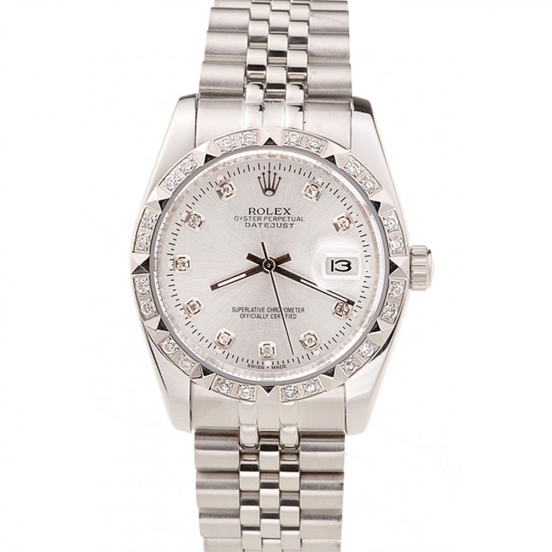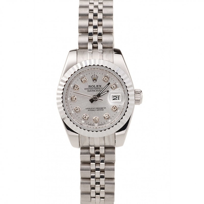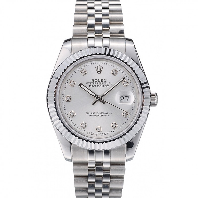 Lujo Réplicas Relojes Rolex Datejust suiza de acero inoxidable acanalado Bisel Dial de plata 41996