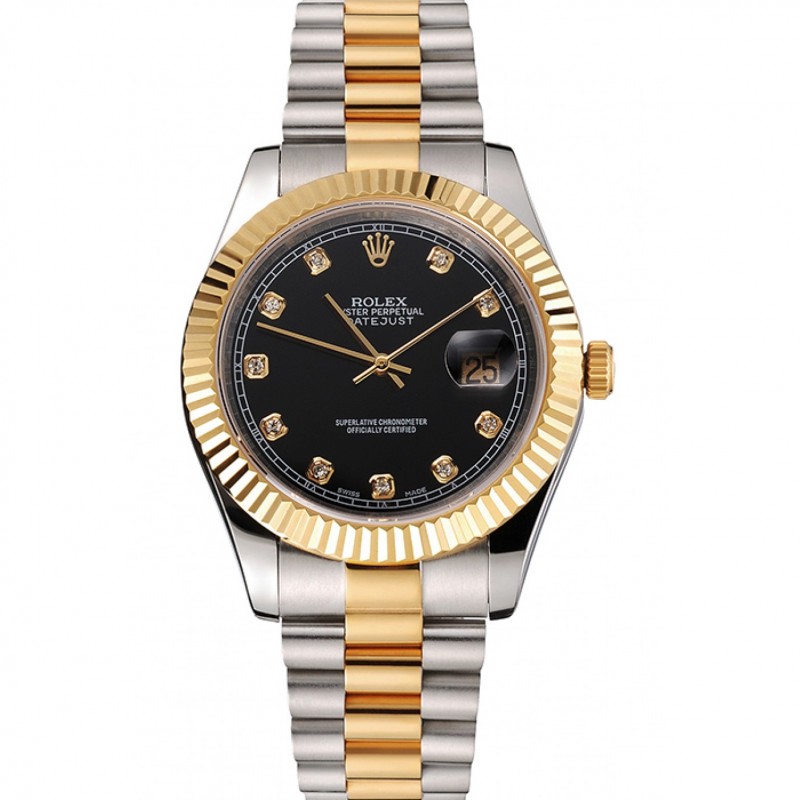Rolex Datejust Negro Dial caja de acero inoxidable bisel de oro dos tonos pulsera