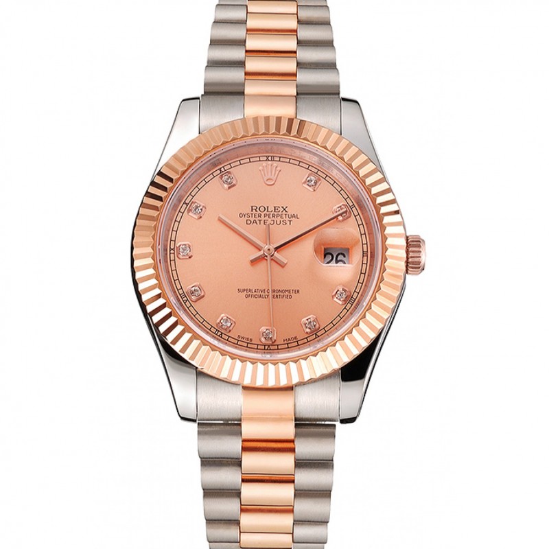 Rolex Datejust Dial de oro rosa y acero inoxidable Bisel pulsera de dos tonos