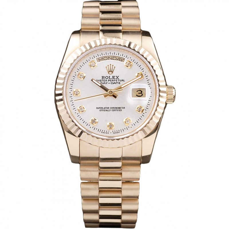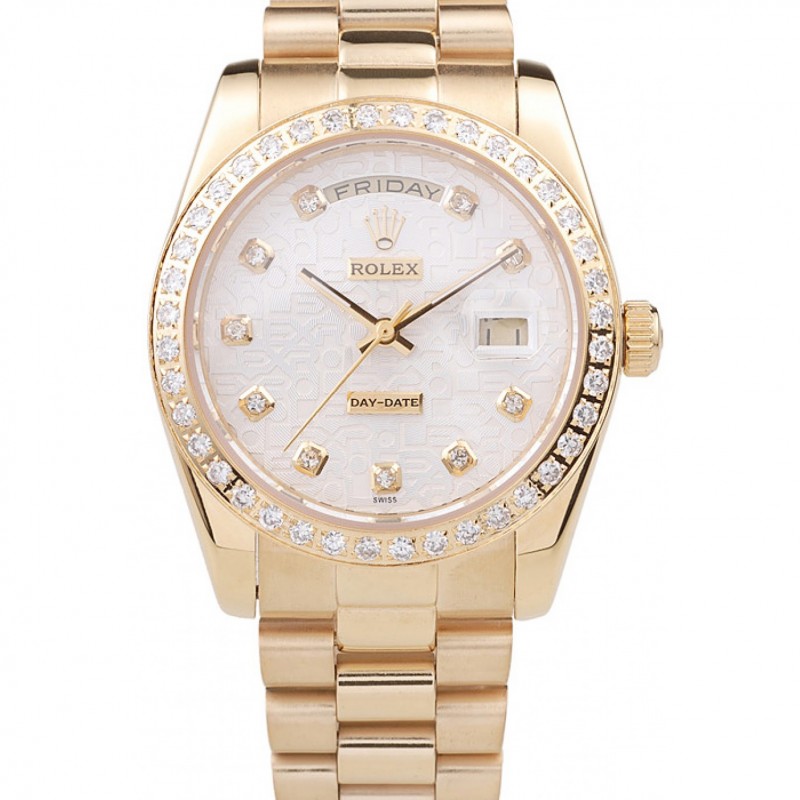 Rolex Day-Date 18k chapado en oro amarillo Dial blancos del acero inoxidable