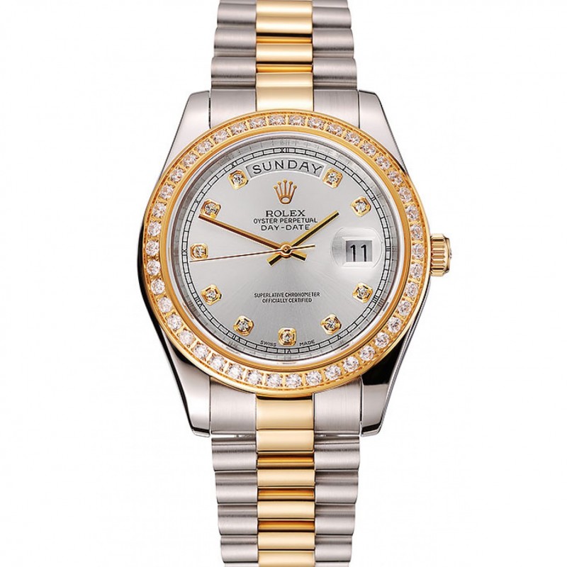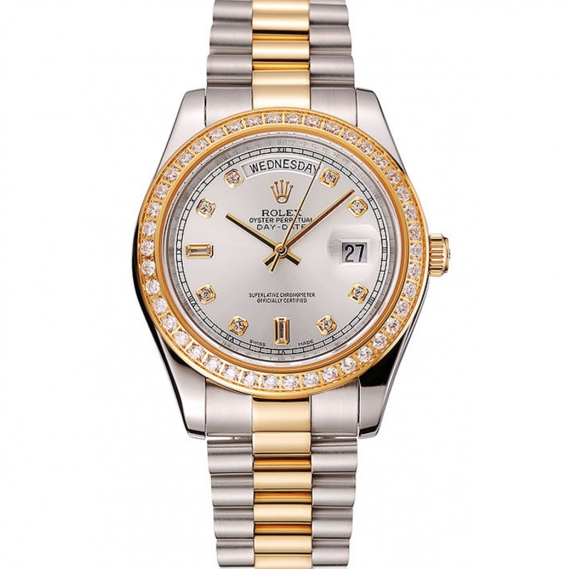 Suiza Rolex Day-Date Esfera Blanca, la caja del diamante del oro de dos tonos pulsera de acero inoxidable 1453972