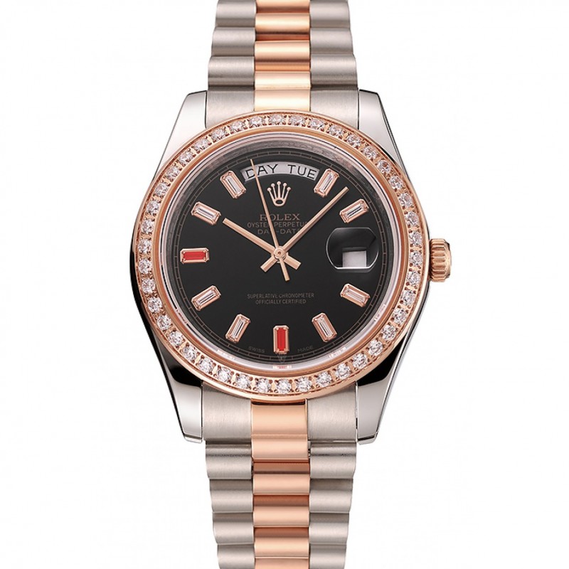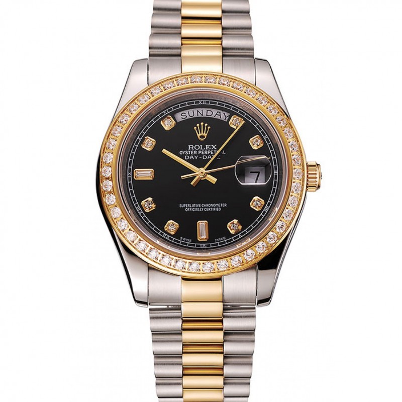 Suiza Rolex Day-Date Negro Dial caja del diamante de oro dos tonos pulsera de acero inoxidable 1453976