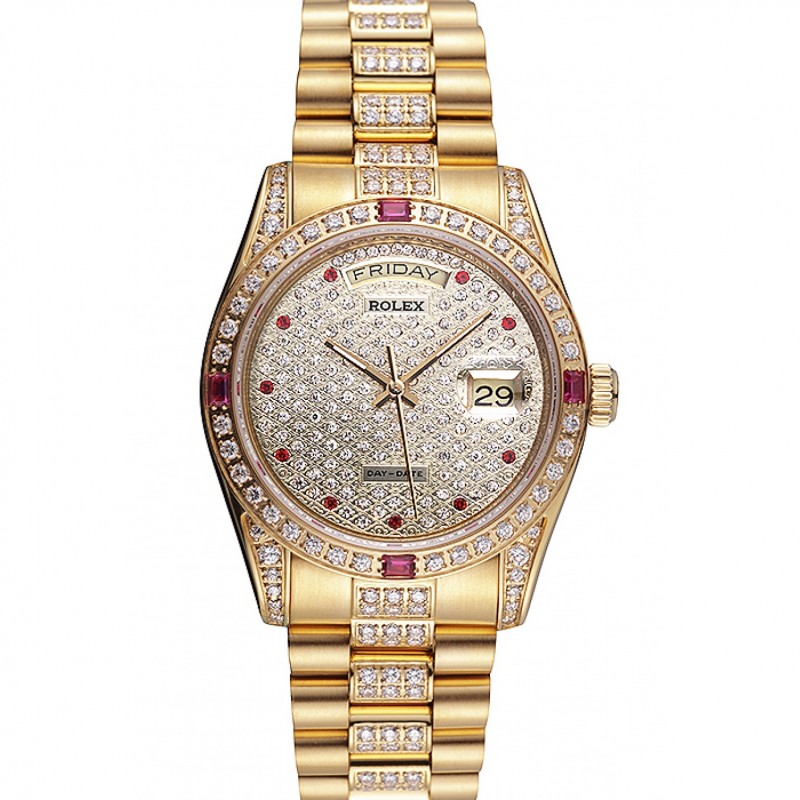 Barato Réplicas Relojes Rolex Day-Date 18k Dial oro amarillo plateado oro del acero inoxidable