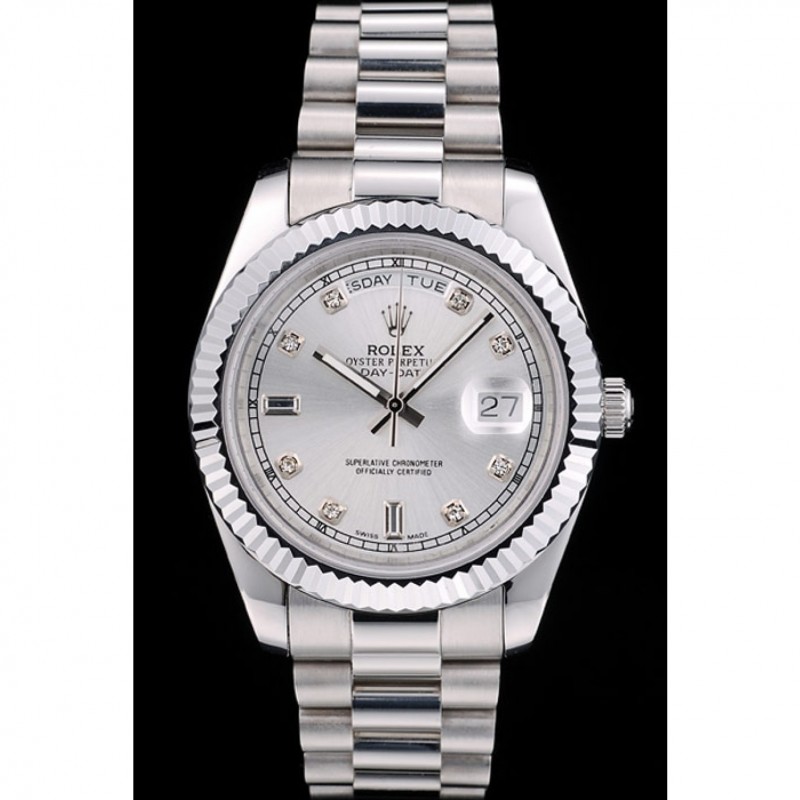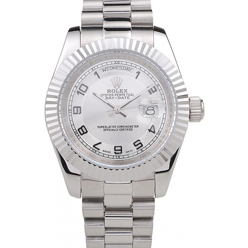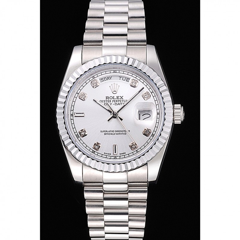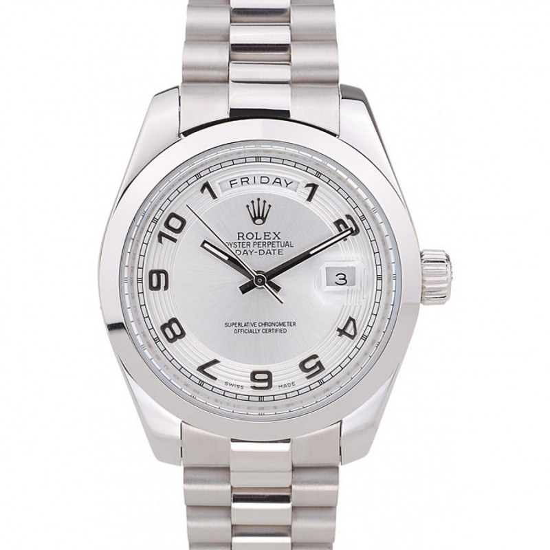 Barato Réplicas Relojes Rolex Day-Date pulido acero inoxidable del dial de plata