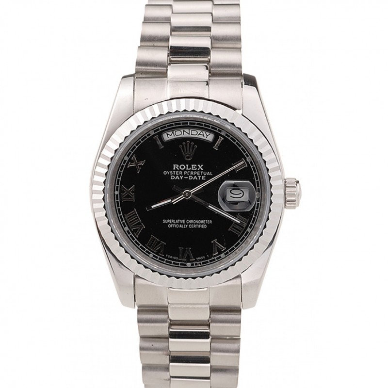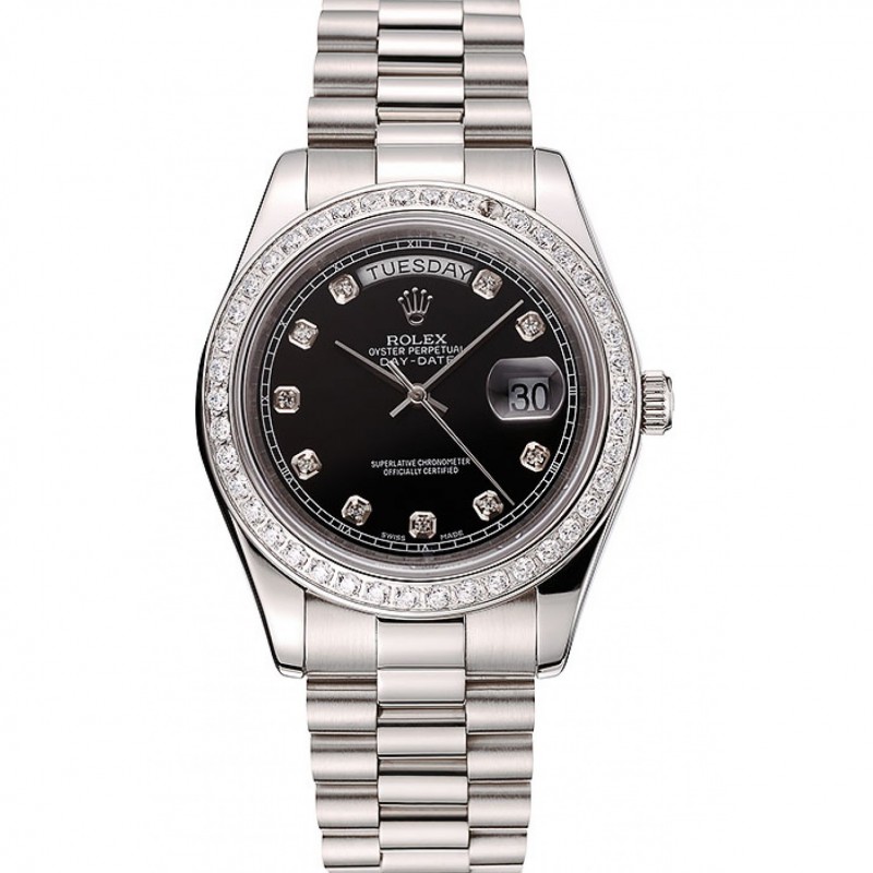 Suiza Rolex Day-Date Negro Dial caja del diamante diamante numerales pulsera de acero inoxidable 1453965