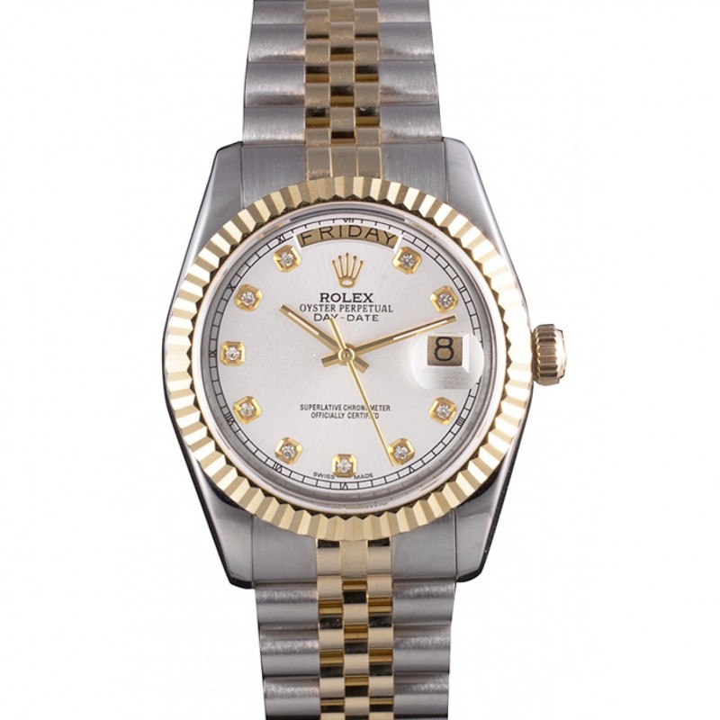 Suiza Rolex Day-Date Esfera Blanca, la caja del diamante del oro de dos tonos pulsera de acero inoxidable 1453972