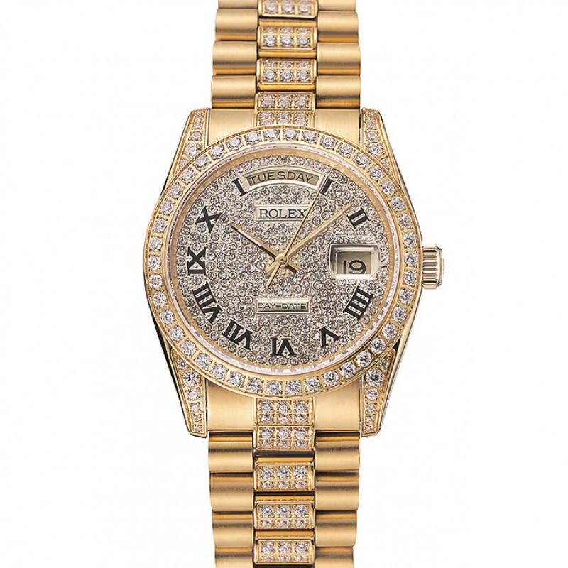 Suiza Rolex Fecha Día oro amarillo diamante de extendido