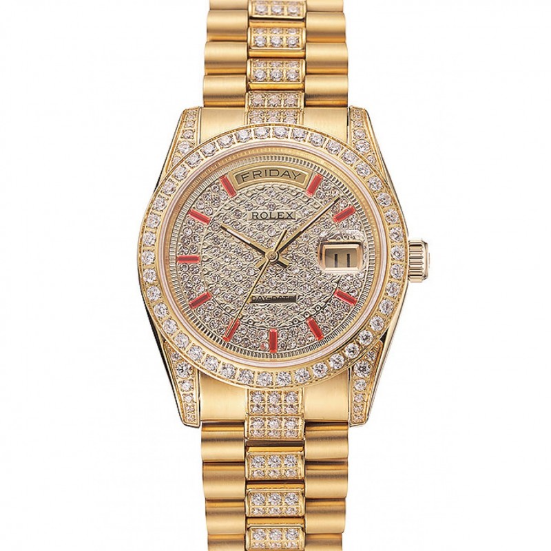 Rolex Day-Date Red Diamond Pave esfera de oro pulsera de diamantes 1453960
