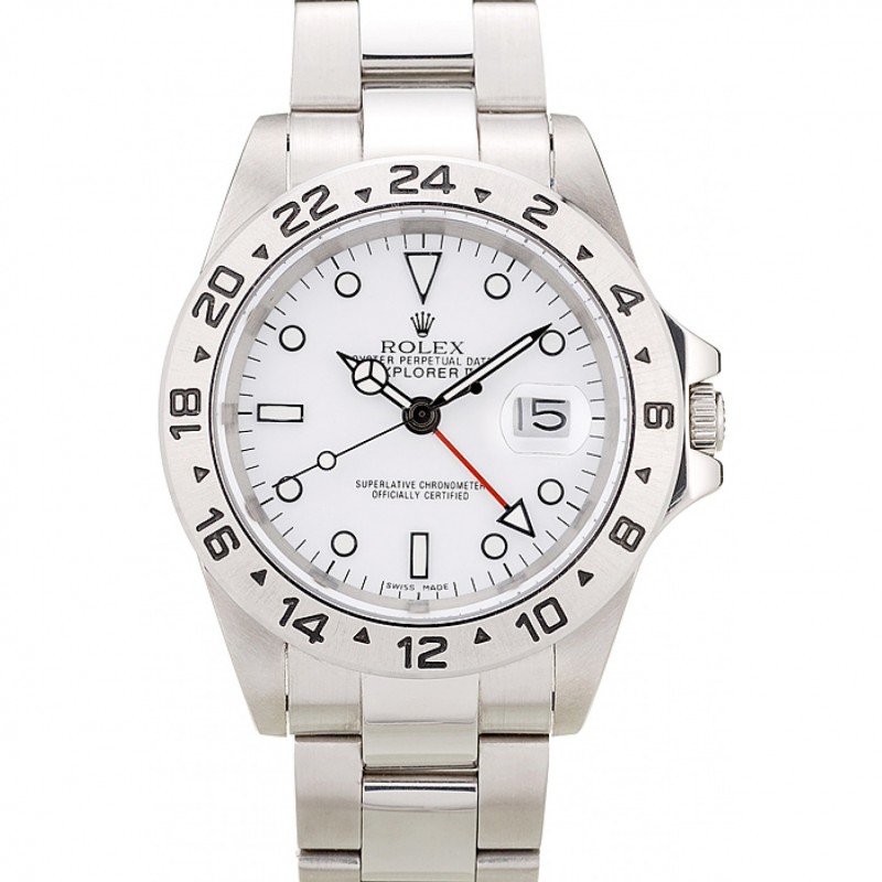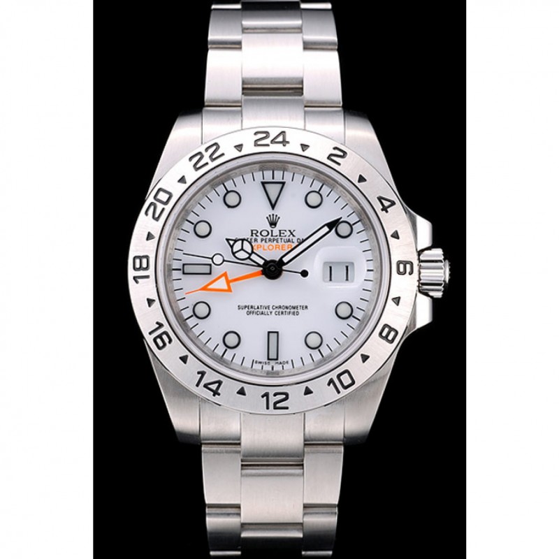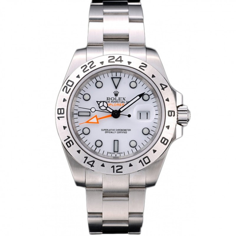Gama alta Réplicas Relojes Rolex Explorador de acero inoxidable pulido Esfera Blanca 98086