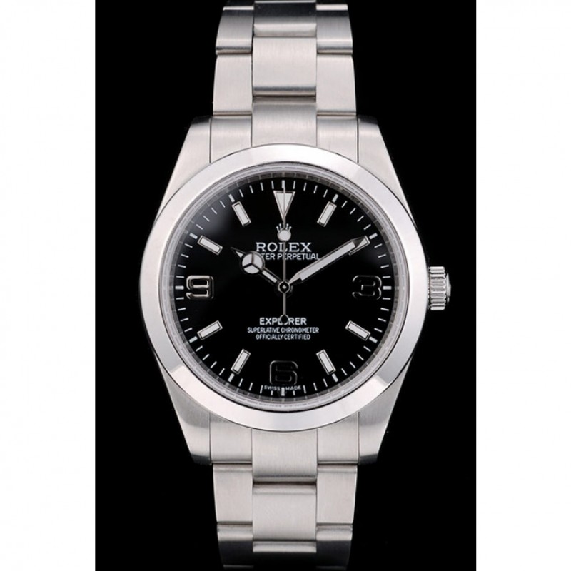 Gama alta Dial Rolex Explorador de acero inoxidable Bisel Negro