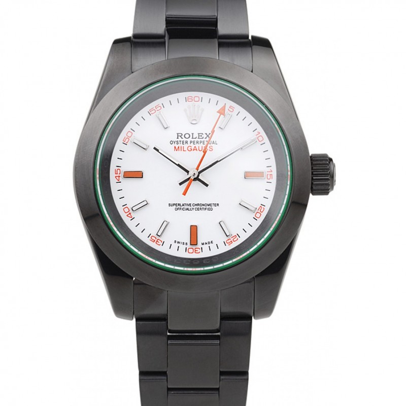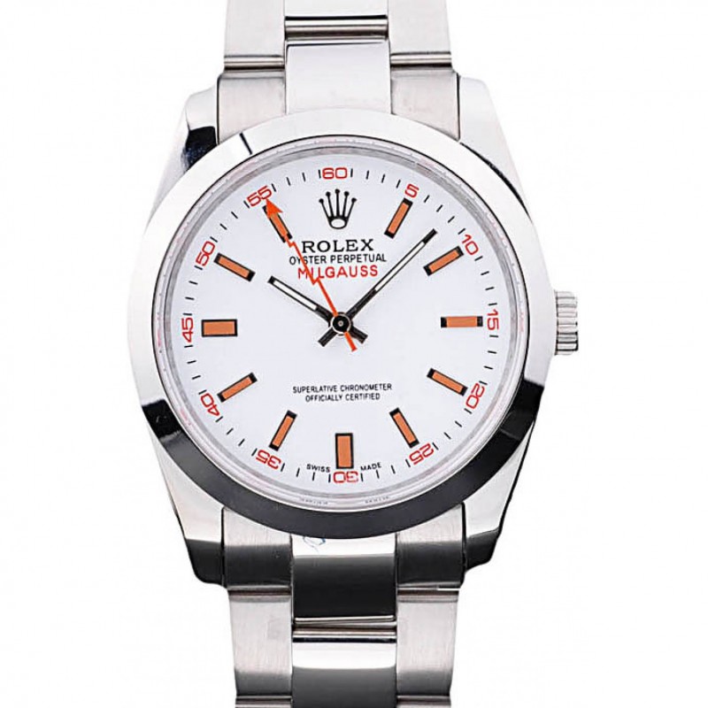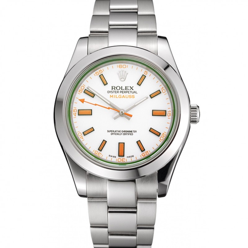 Suiza Rolex Milgauss Blanco Dial Caja de acero naranja marcas inoxidable y pulsera