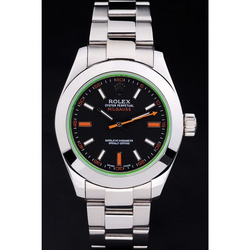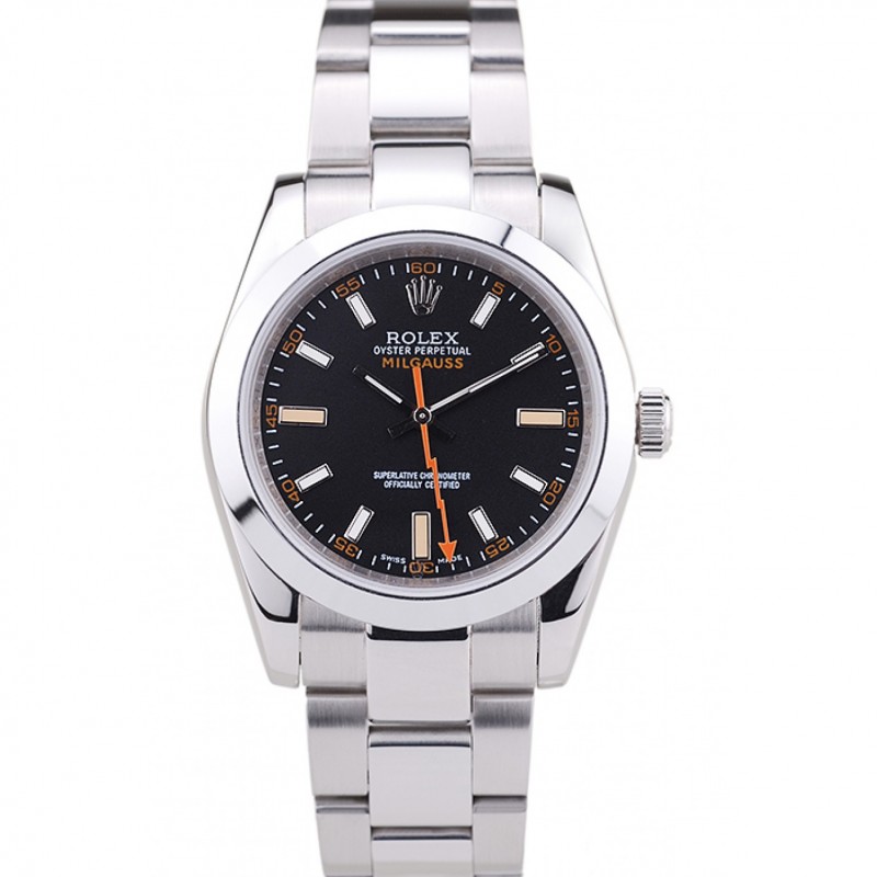 Suiza Rolex Milgauss Negro Dial Caja de acero inoxidable de Orange Marcas y pulsera