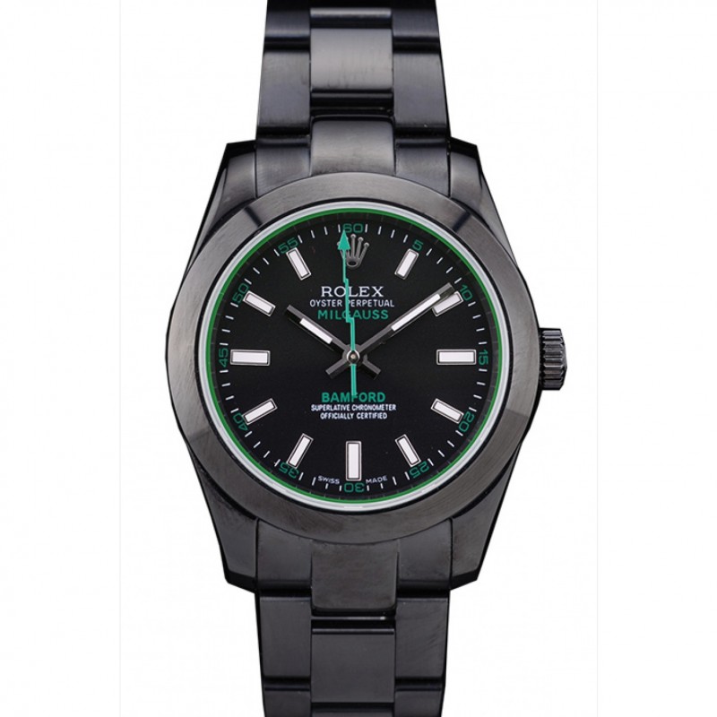 Rolex Milgaus Bamford Ion plateado de acero inoxidable Bisel Negro Dial 7476
