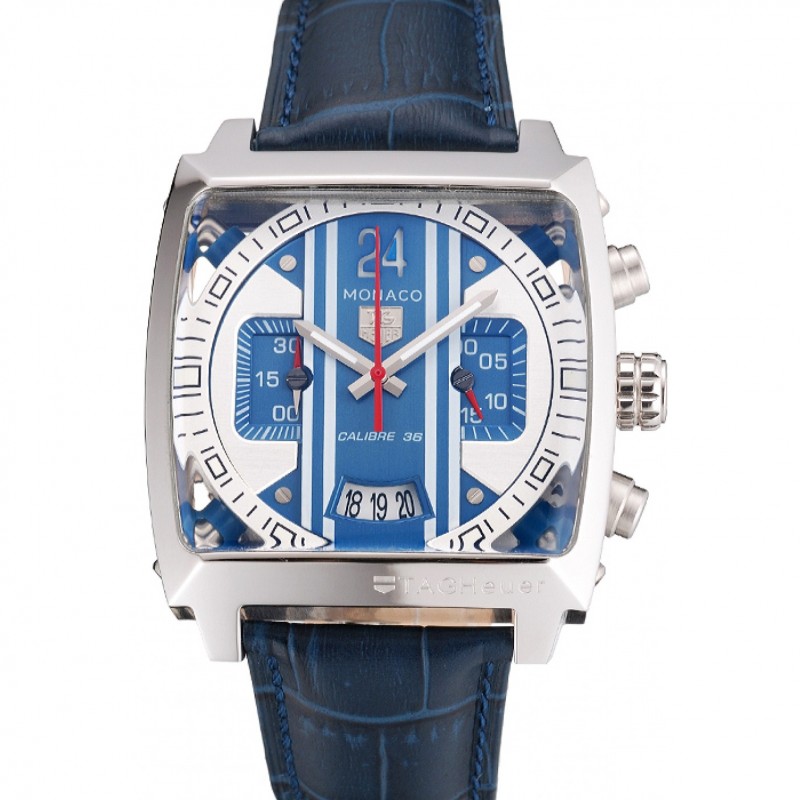 Tag Heuer Monaco 24 Calibre 36 Cronógrafo Azules Y Grises Dial correa de cuero azul 622273