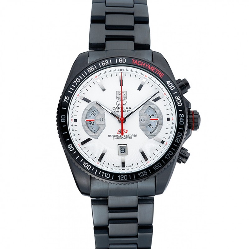 SS Tag Heuer Carrera Negro caja de acero inoxidable Esfera Blanca 98242