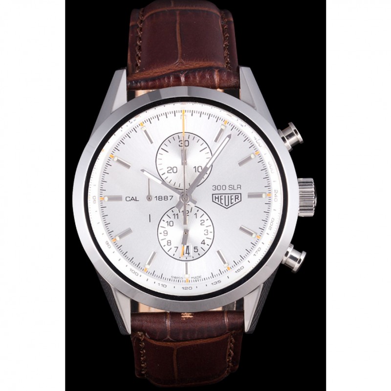 Tag Heuer SLR Caso Acero inoxidable cepillado Plata Dial correa de cuero de Brown