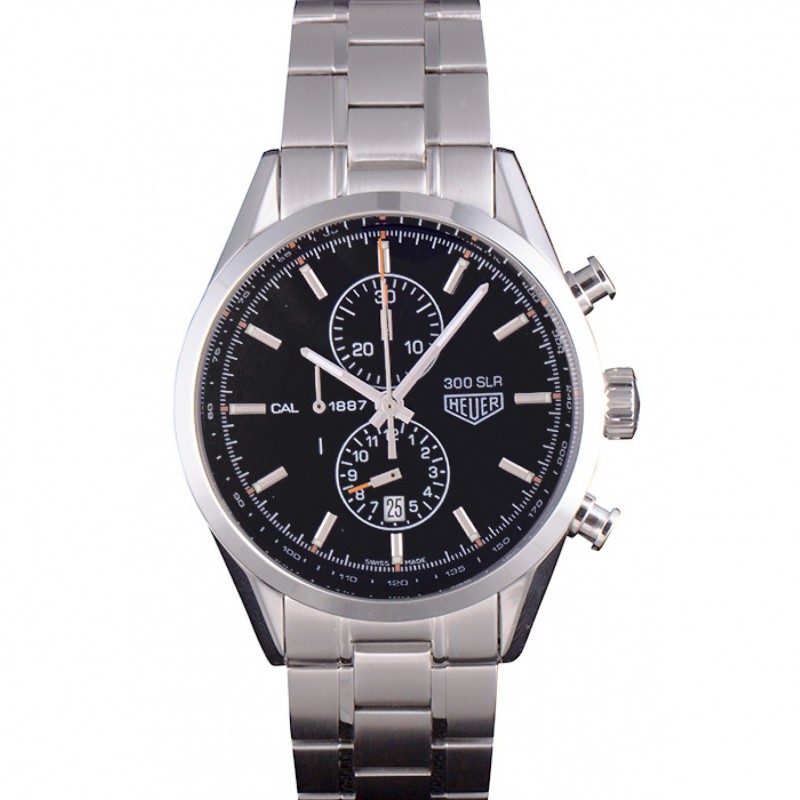 Lujo Réplicas Relojes TAG Heuer SLR pulido caja de acero inoxidable Negro Dial correa de acero inoxidable