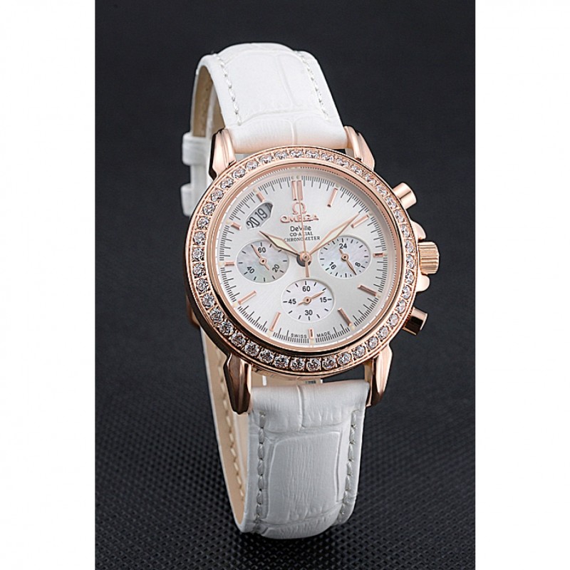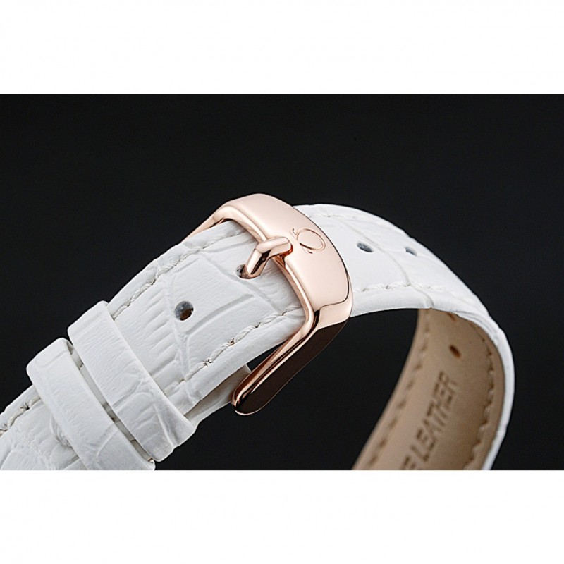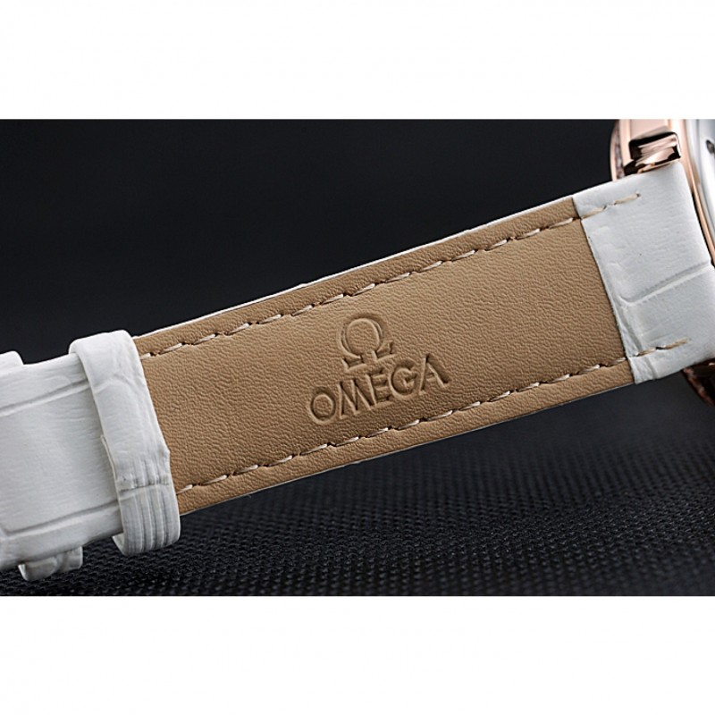 pulsera: correa de piel de cocodrilo blanco Omega y el logotipo en relieve de calor con el logotipo de 18k grabado de oro rosa plateado gancho hebilla de cierre