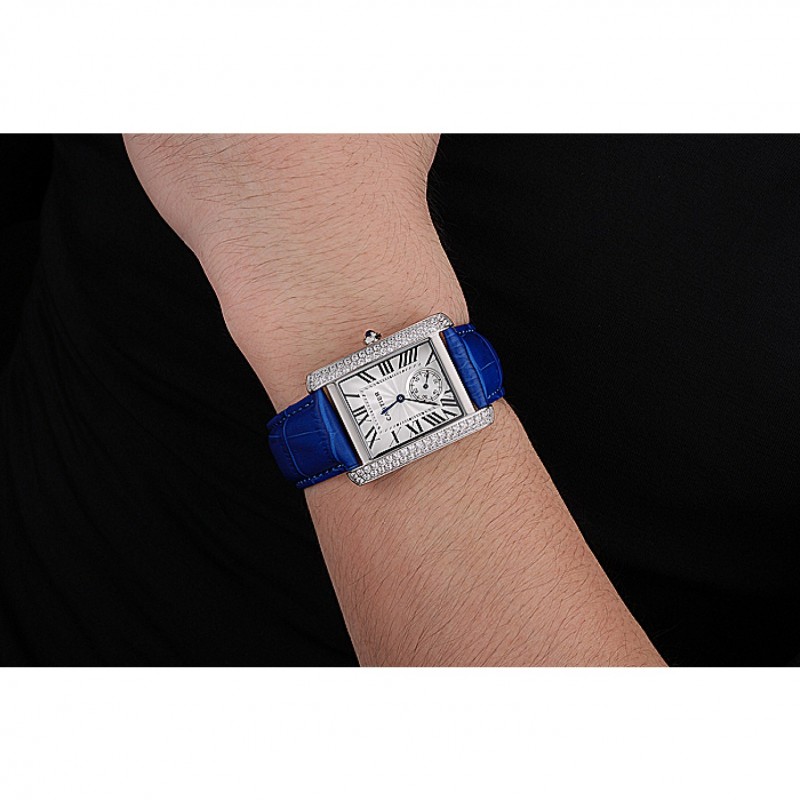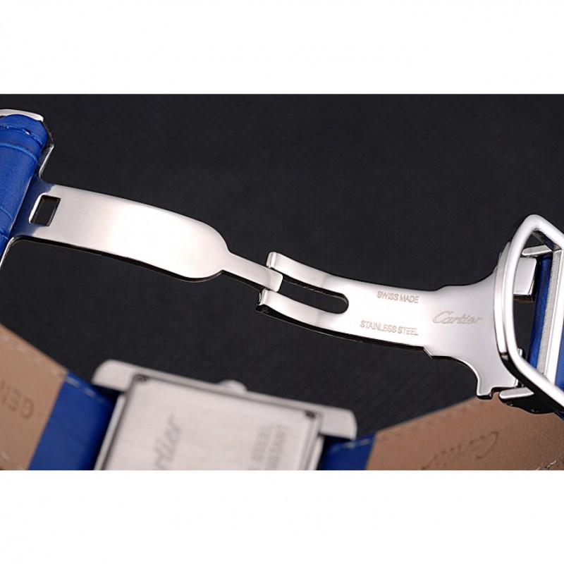 pulsera: correa de piel de cocodrilo azul calor Cartier en relieve con pulido plegable en acero inoxidable cierre de