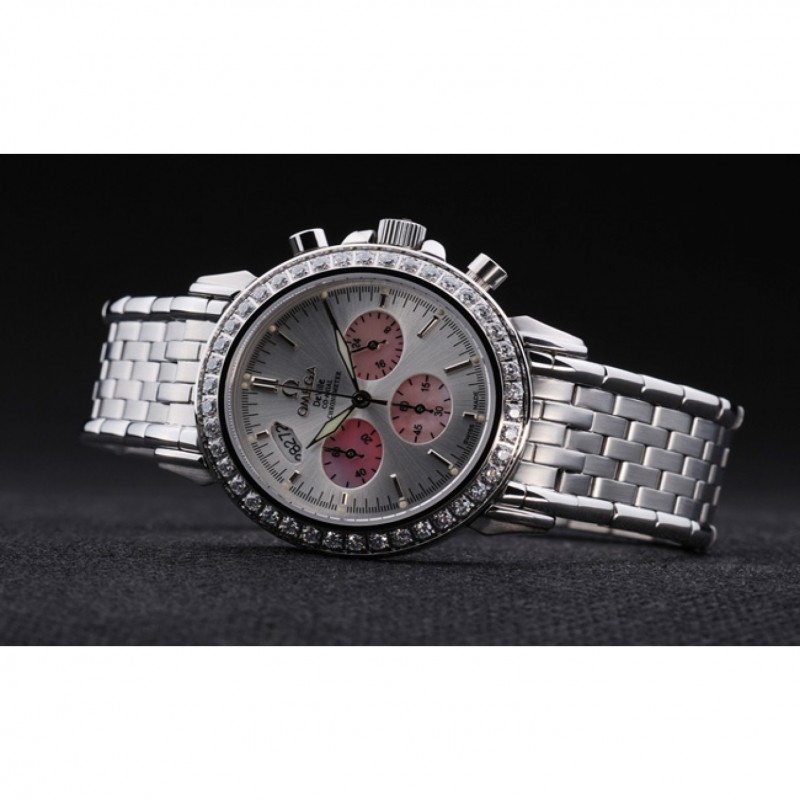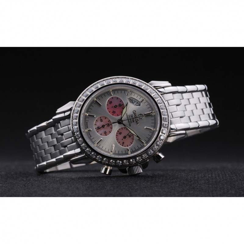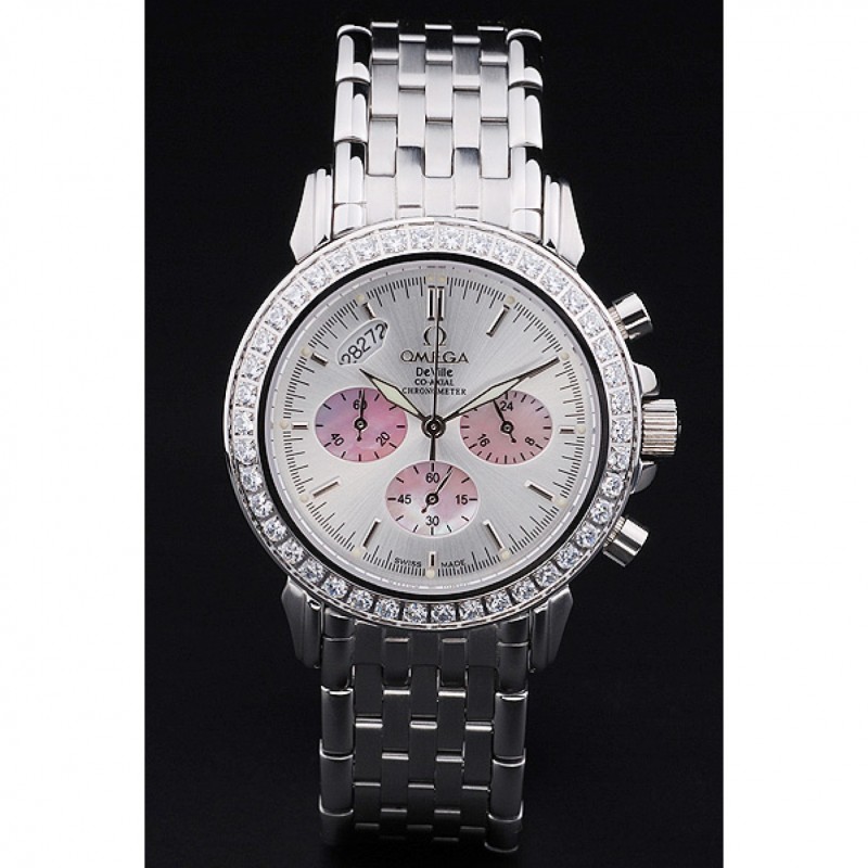 Crown: pulido corona cutwork acero inoxidable con logo Omega más dos coronas adicionales, uno en cada lado de ella