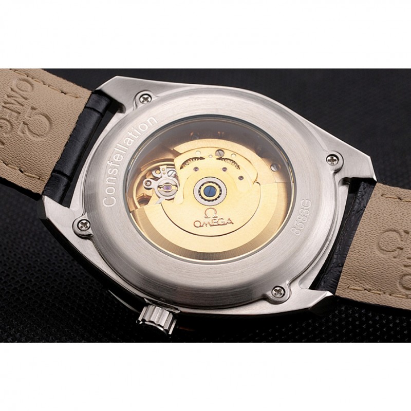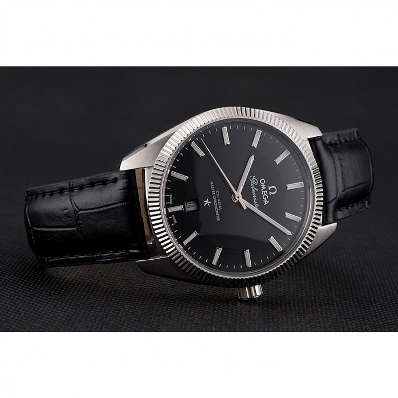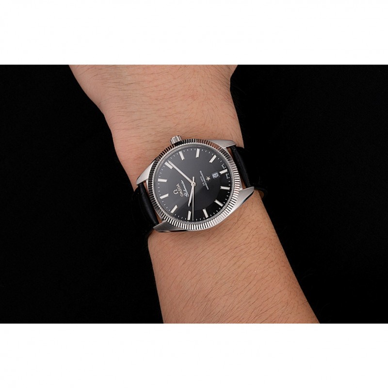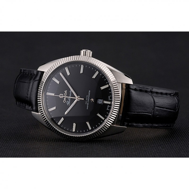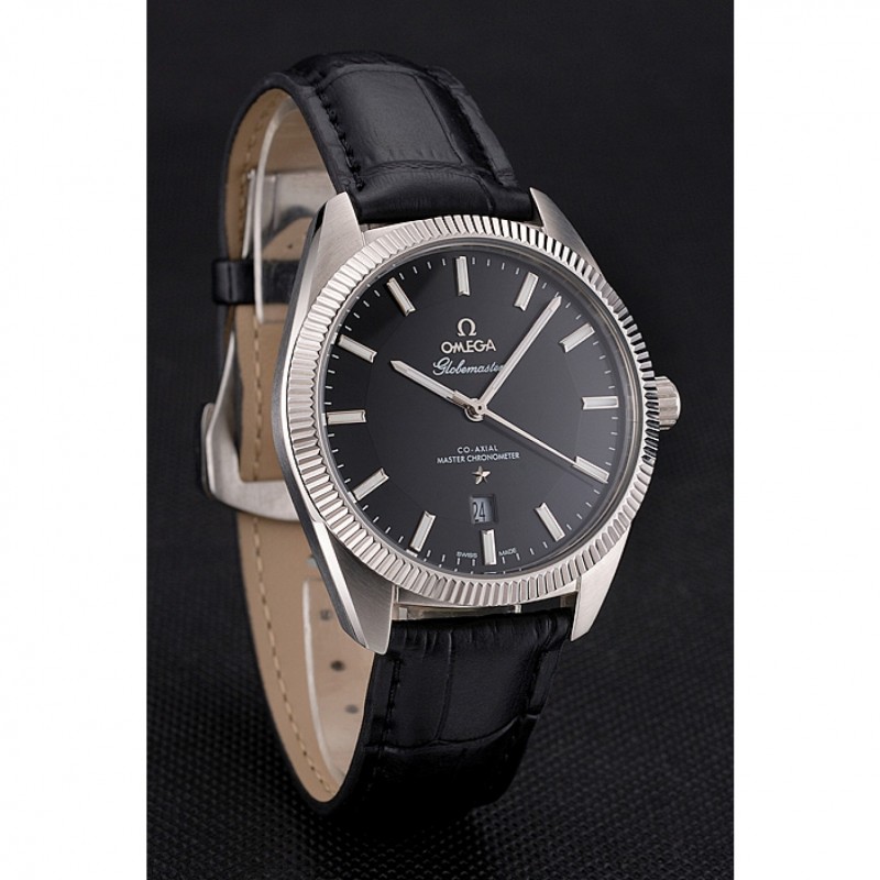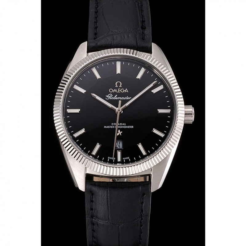 AAA Réplicas Relojes Omega Globemaster Negro Dial correa de cuero caja de acero inoxidable Negro