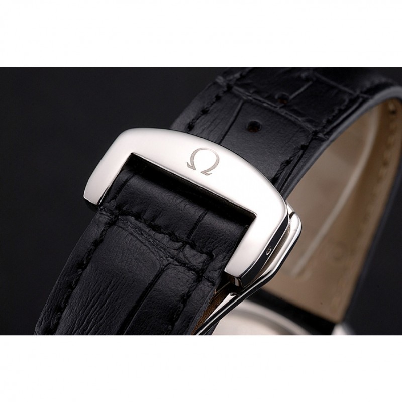 pulsera: logo y el calor Omega en relieve correa de piel de cocodrilo negro con el logotipo inscrito pulida de acero inoxidable gancho del corchete