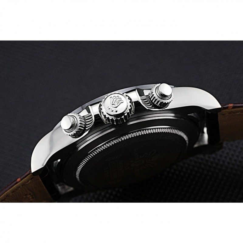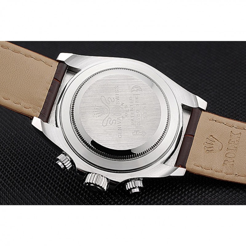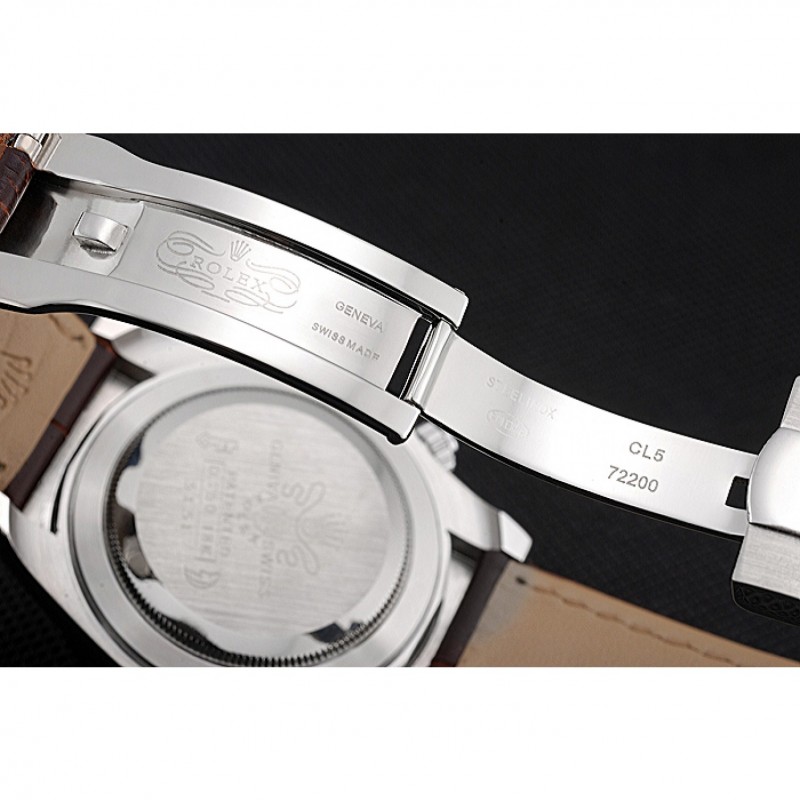 pulsera: logotipo y correa de cuero Rolex de calor en relieve de cocodrilo marrón con logo tallado acero inoxidable cepillado implementación de cierre