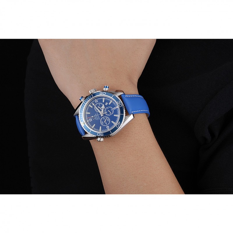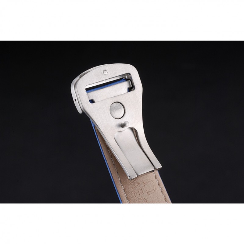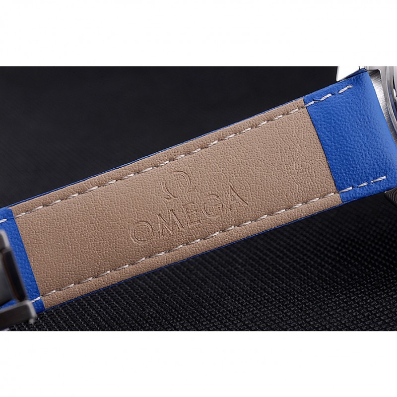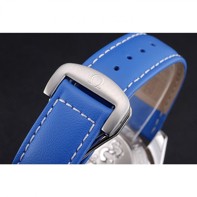 pulsera: logotipo y correa de cuero azul en relieve de calor Omega con el logotipo grabado cepillado gancho de acero inoxidable cierre