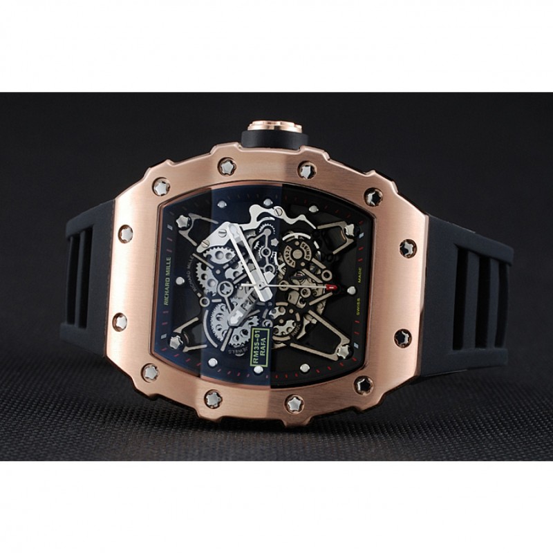 Volver: Richard Mille grabado rosa de 18 quilates chapado en oro atornillado posterior