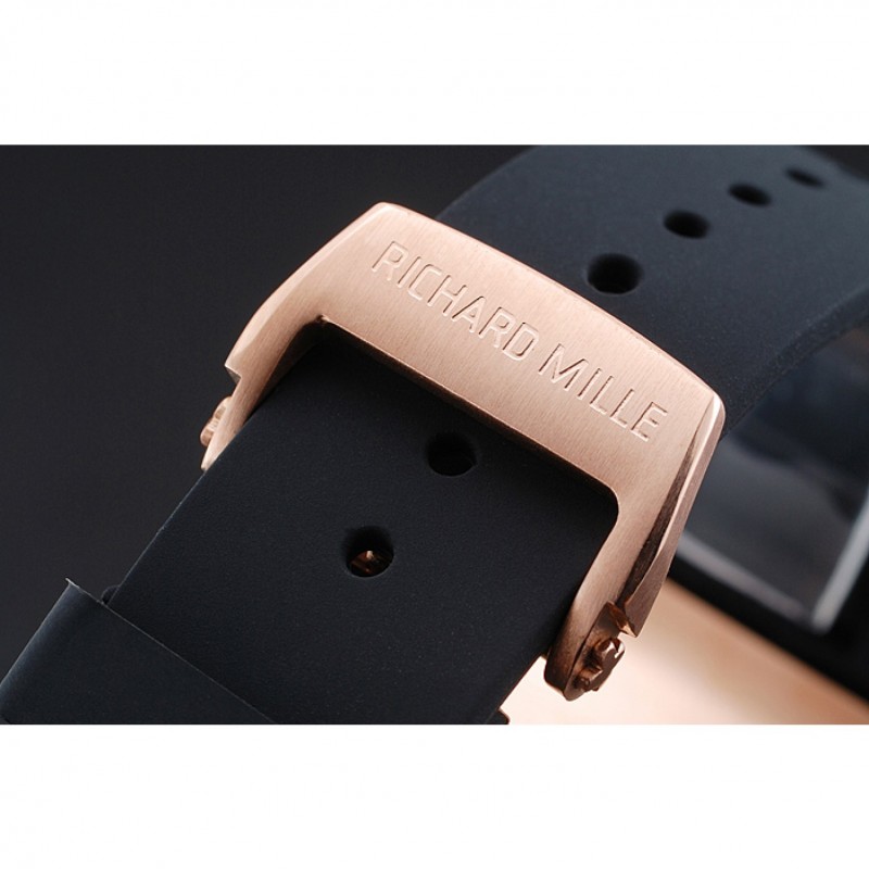 pulsera: correa de caucho negro en relieve calor Richard Mille con Richard Mille grabado 18K rose-chapado en oro de gancho hebilla de cierre